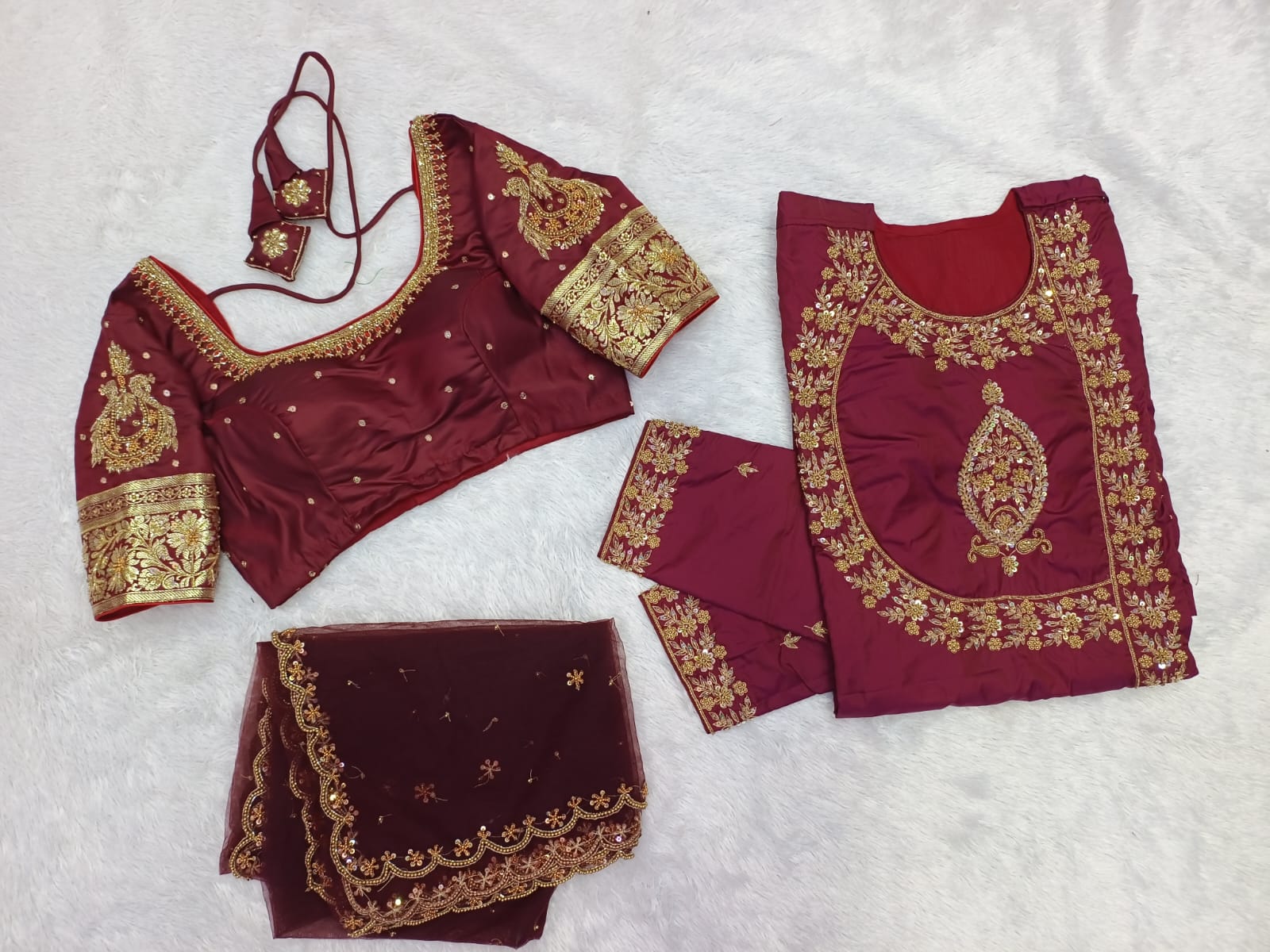 Festive Combo Set - Maroon & Cream